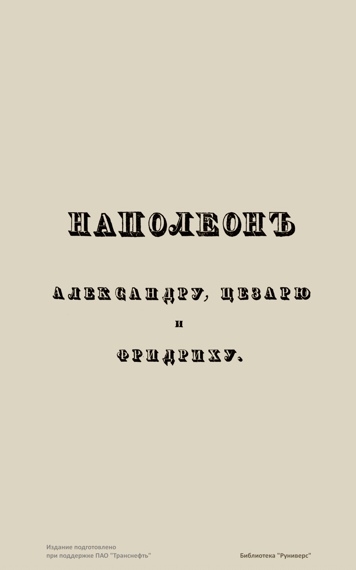 Русский перевод сочинения «Политическая и военная жизнь Наполеона» был сделан со знаменитой работы Жомини, изданной в Париже в 1827 г., — «Vie politique et militaire de Napoléon, racontée par lui-même au tribunal de César, d’Alexandre et de Frédéric» («Политическая и военная жизнь Наполеона, рассказанная им перед судом Цезаря, Александра и Фридриха»). Для данного труда Жомини избрал форму рассказа, который Наполеон ведет о своих походах. В основу этого повествования от первого лица лег, без сомнения, труд Э. О. де Лас Каза — секретаря Наполеона, записывавшего его мысли и воспоминания на острове Св. Елены, изданный в 1822–1823 гг. под названием «Mémorial de Sainte-Hélène» («Мемориал Святой Елены).