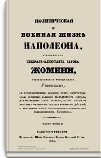 Русский перевод сочинения «Политическая и военная жизнь Наполеона» был сделан со знаменитой работы Жомини, изданной в Париже в 1827 г., — «Vie politique et militaire de Napoléon, racontée par lui-même au tribunal de César, d’Alexandre et de Frédéric» («Политическая и военная жизнь Наполеона, рассказанная им перед судом Цезаря, Александра и Фридриха»). Для данного труда Жомини избрал форму рассказа, который Наполеон ведет о своих походах. В основу этого повествования от первого лица лег, без сомнения, труд Э. О. де Лас Каза — секретаря Наполеона, записывавшего его мысли и воспоминания на острове Св. Елены, изданный в 1822–1823 гг. под названием «Mémorial de Sainte-Hélène» («Мемориал Святой Елены).