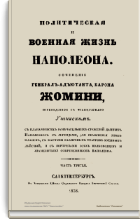 Русский перевод сочинения «Политическая и военная жизнь Наполеона» был сделан со знаменитой работы Жомини, изданной в Париже в 1827 г., — «Vie politique et militaire de Napoléon, racontée par lui-même au tribunal de César, d’Alexandre et de Frédéric» («Политическая и военная жизнь Наполеона, рассказанная им перед судом Цезаря, Александра и Фридриха»). Для данного труда Жомини избрал форму рассказа, который Наполеон ведет о своих походах. В основу этого повествования от первого лица лег, без сомнения, труд Э. О. де Лас Каза — секретаря Наполеона, записывавшего его мысли и воспоминания на острове Св. Елены, изданный в 1822–1823 гг. под названием «Mémorial de Sainte-Hélène» («Мемориал Святой Елены).