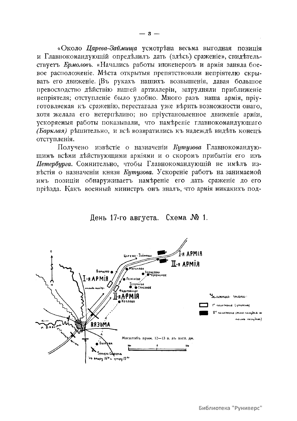 Война 1812 г. Бородинская операцiя и Бородинское сраженiе. Книга 3-я. (Дѣйствия съ 17-го по 23-ье Августа 1812 г.)