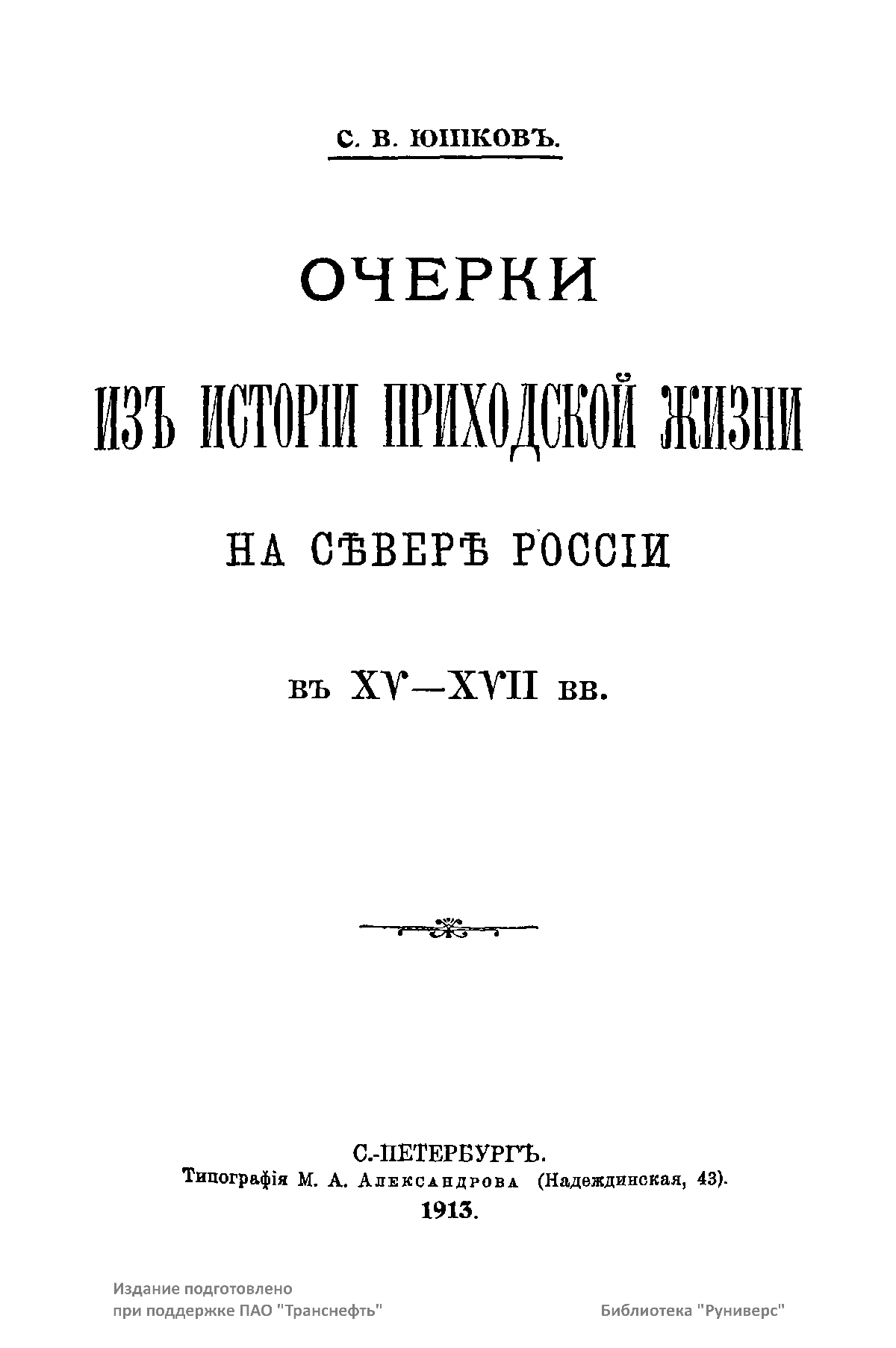Очерки изъ исторiи приходской жизни на сѣверѣ Россiи въ XV-XVII вв.