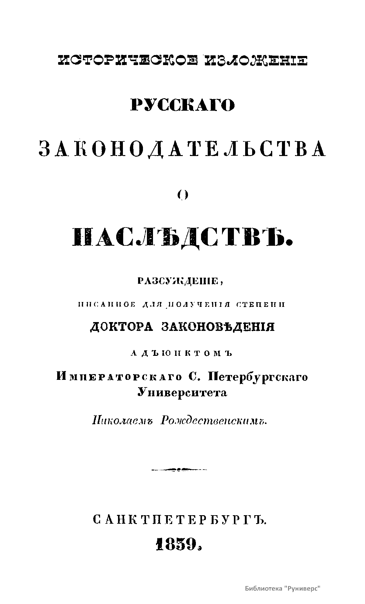Историческое изложенiе русскаго законодательства о наслѣдствѣ