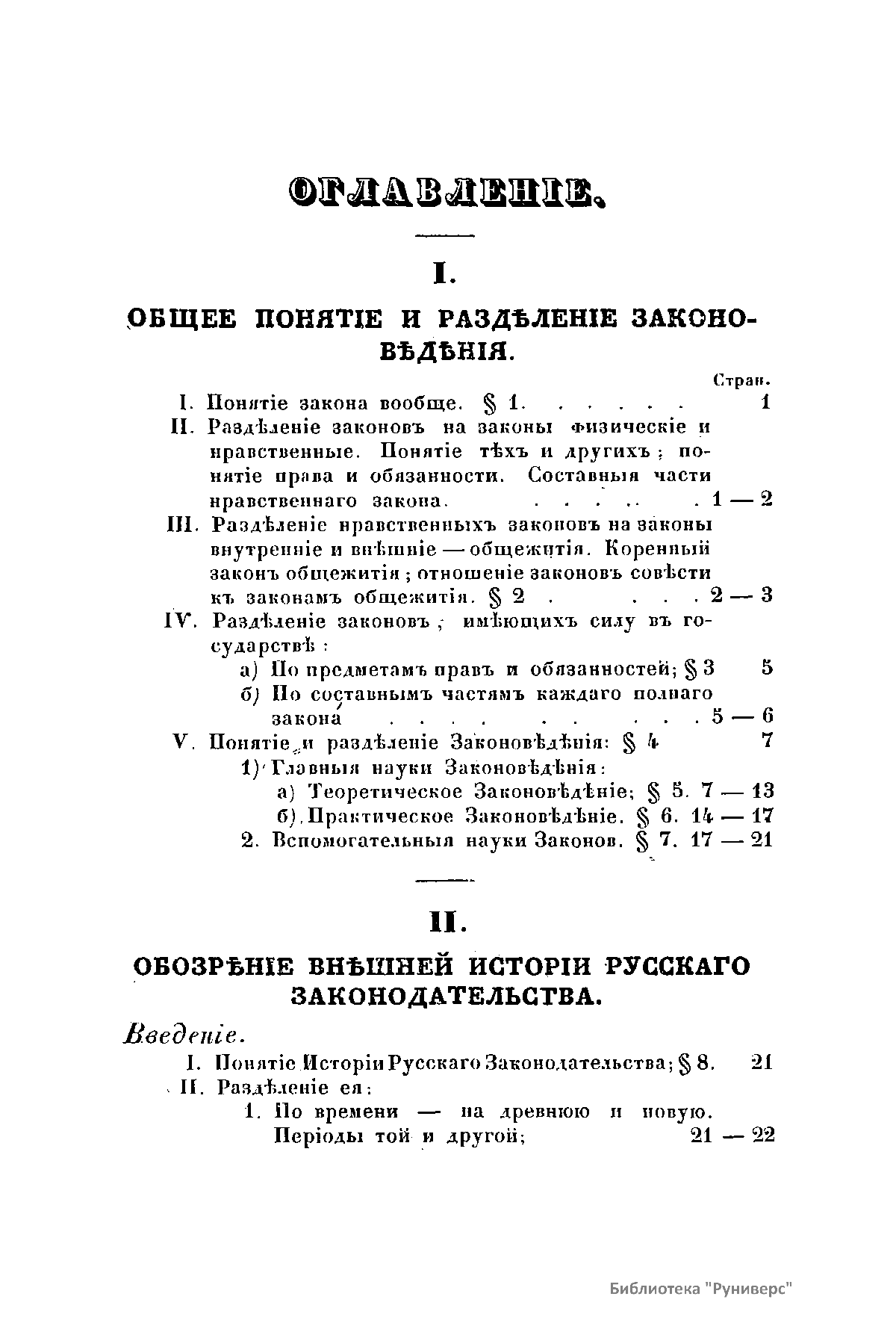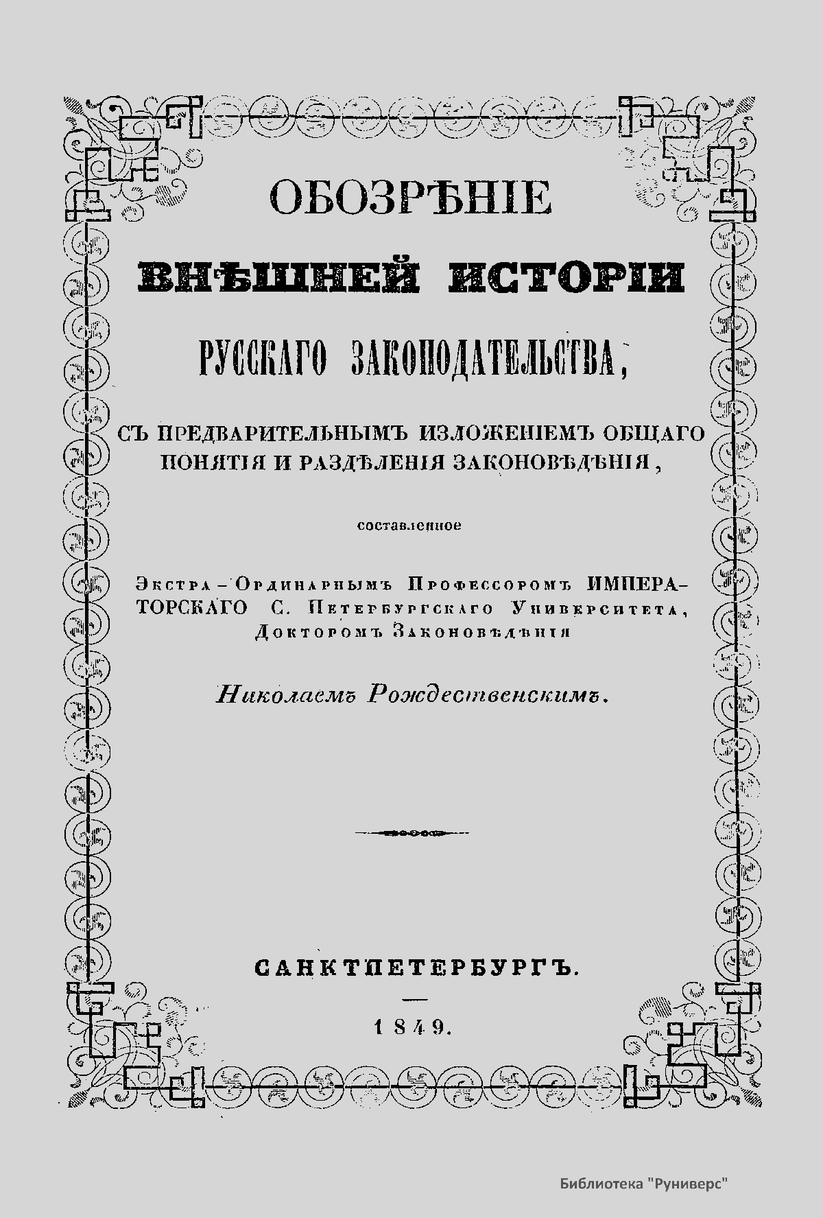 Обозрѣнiе внѣшней исторiи русскаго законодательства, съ предварительнымъ изложенiемъ общаго понятiя и раздѣленiя законовѣдѣнiя