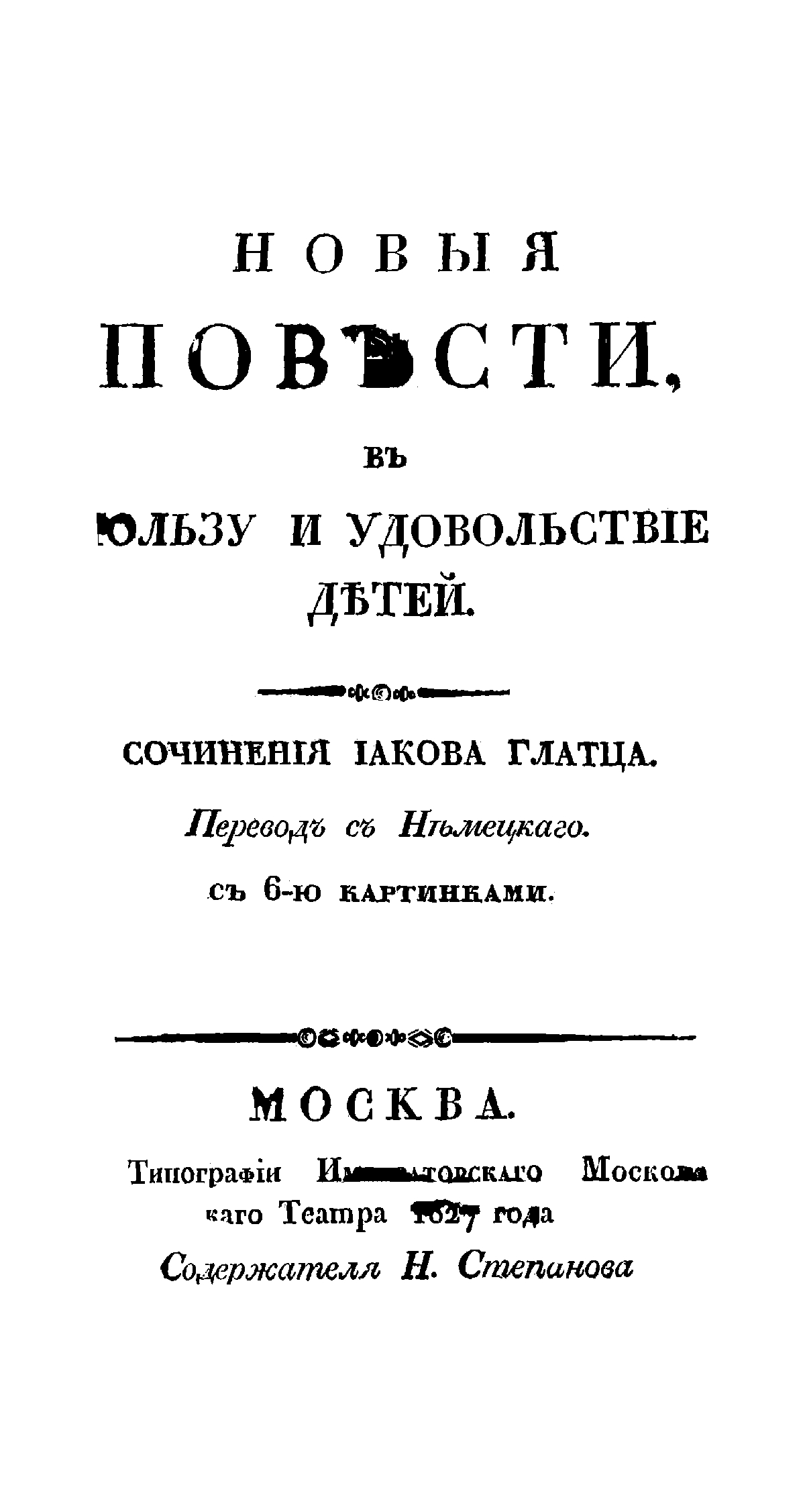Новыя повѣсти, в пользу и удовольствіе дѣтей