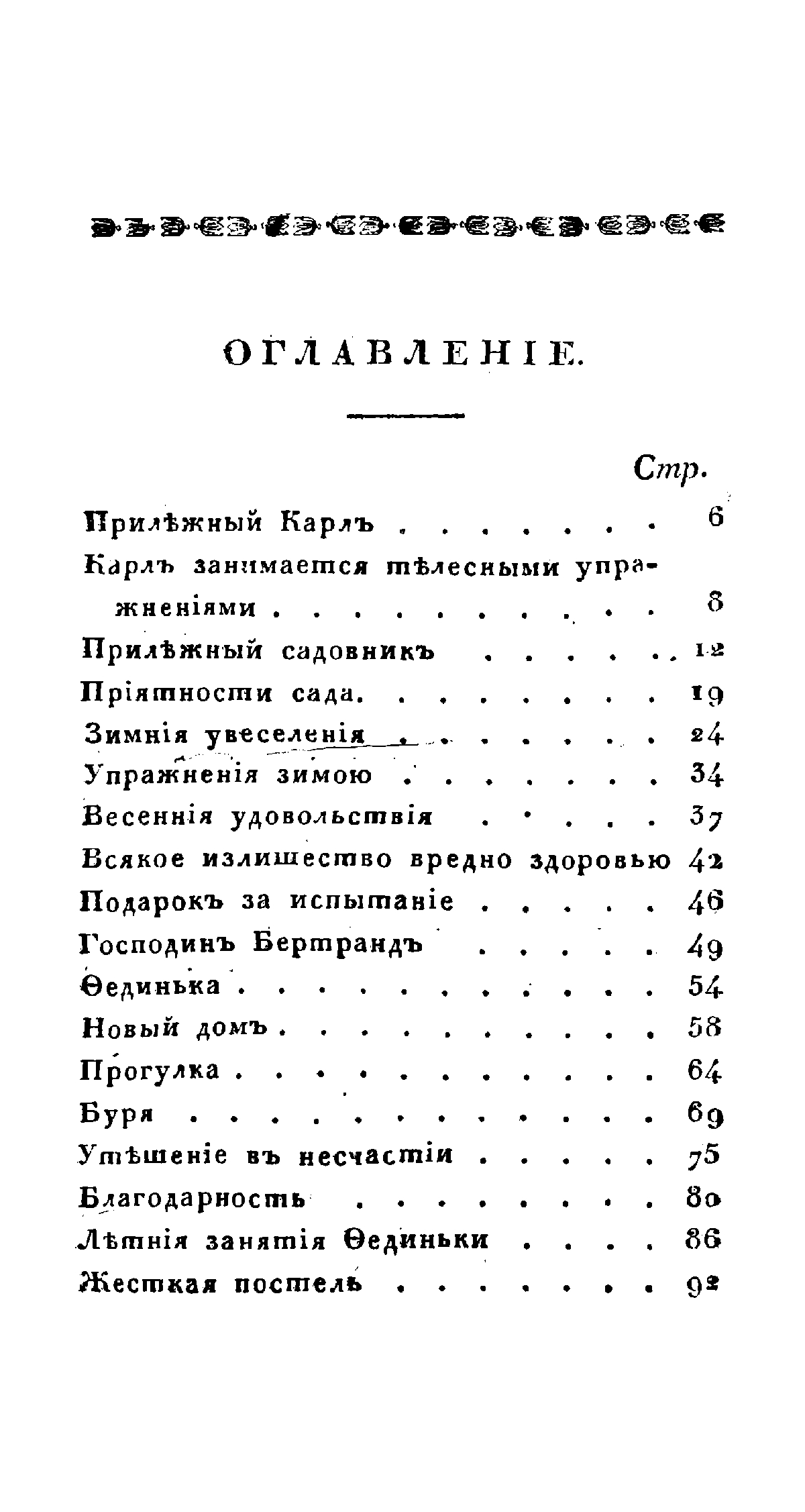 В небольших познавательных рассказах о жизни, умениях и поступках мальчика Карла и его друзей встречаются стихотворения Василия Жуковского, Александра Мещевского, отрывки из произведений Николая Иванчина-Писарева. Стихотворение для рассказа «Зимние увеселения» взято из сборника «Прелестный вертоград для детей», вышедшего в 1816 году в Санкт-Петербурге и состоящего в основном из притч и басен.