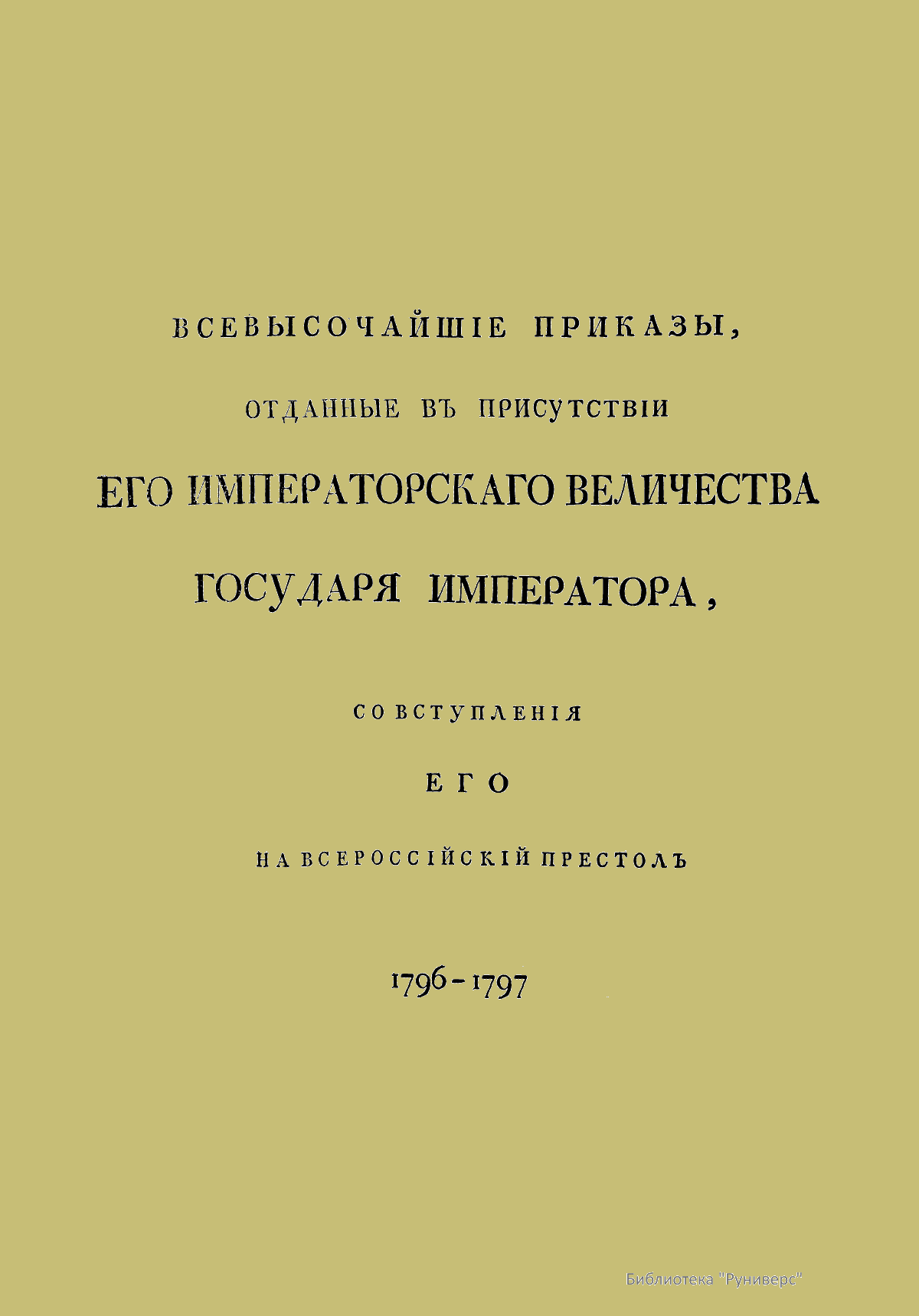 Всевысочайшие приказы, отданные в присутствии Его Императорского Величества Государя Императора, со вступления его на Всероссийкий престол.