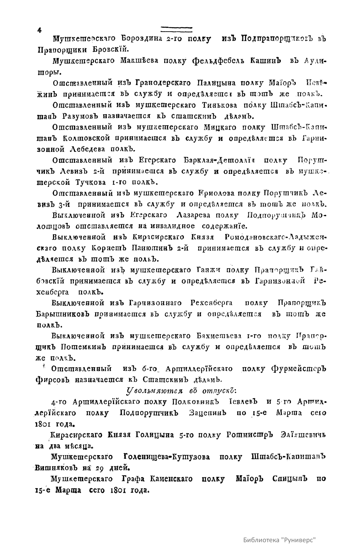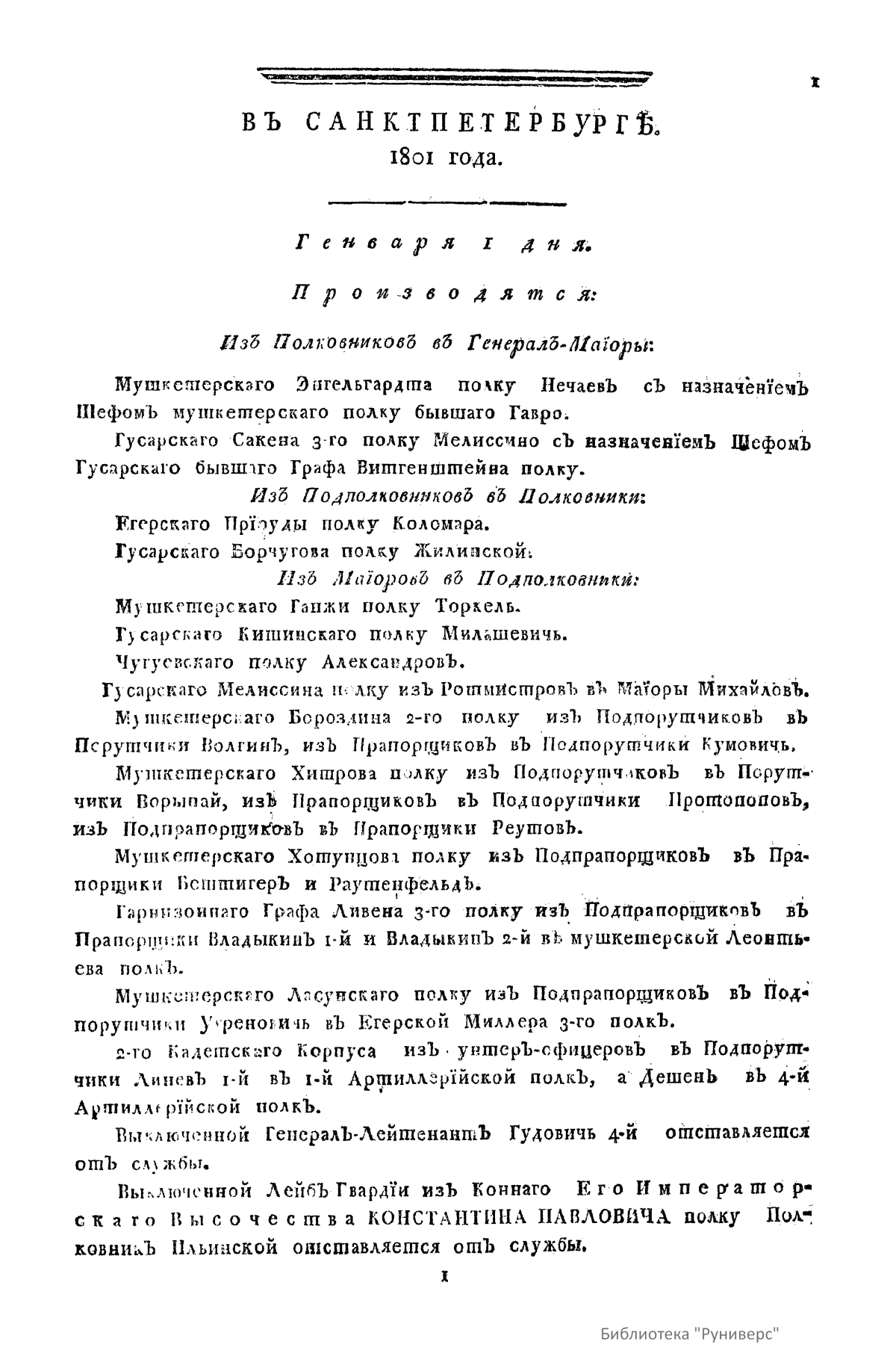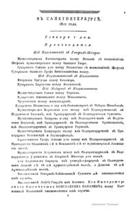 Всевысочайшие приказы, отданные в присутствии Его Императорского Величества Государя Императора, со вступления его на Всероссийкий престол. 1801