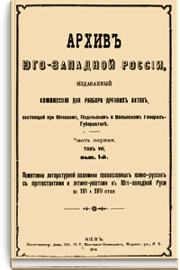 В серии «Архив Юго-Западной России» были напечатаны документы Киевского архива. Издание было предпринято Киевской археографической комиссией с 1859 по 1911 год. Всего вышло 34 тома.