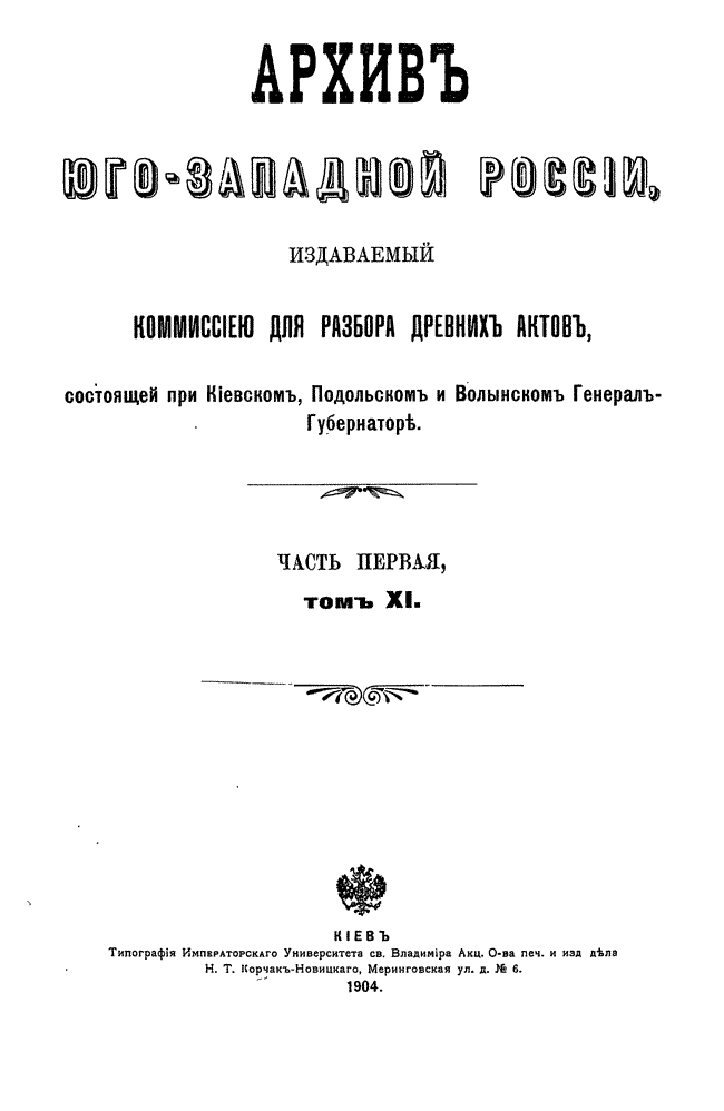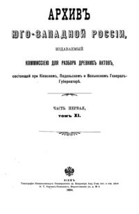 В серии «Архив Юго-Западной России» были напечатаны документы Киевского архива. Издание было предпринято Киевской археографической комиссией с 1859 по 1911 год. Всего вышло 34 тома.