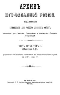 В серии «Архив Юго-Западной России» были напечатаны документы Киевского архива. Издание было предпринято Киевской археографической комиссией с 1859 по 1911 год. Всего вышло 34 тома.