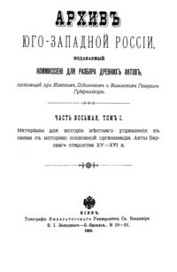 Архив Юго-Западной России. Часть 8. Том I.