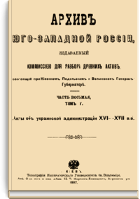 В серии «Архив Юго-Западной России» были напечатаны документы Киевского архива. Издание было предпринято Киевской археографической комиссией с 1859 по 1911 год. Всего вышло 34 тома.