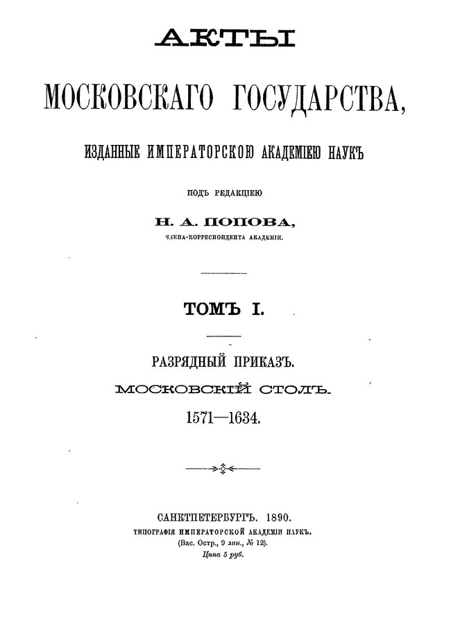 Том I. Разрядный приказ. Московский стол. 1571-1634.
