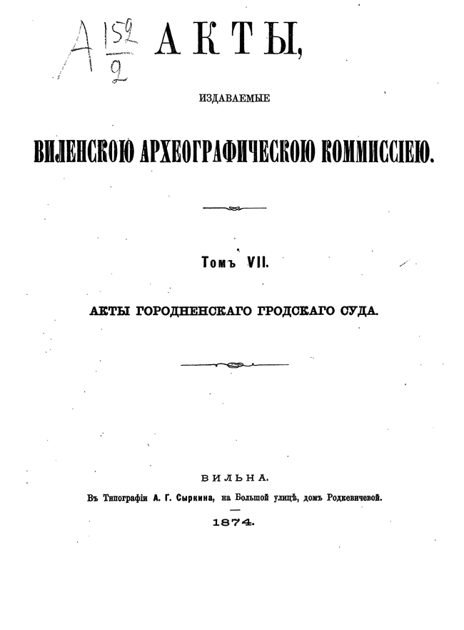 Том VII. Акты Гродненского городского суда.