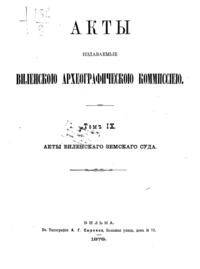 Обилие актов и документов Виленского центрального архива (19244 актовых книг) и желание исследовать прошлое Литвы, которая и в старину принадлежала России, вызвали после 1863 года учреждение особой комиссии для разбора в городе Вильне древних актов.