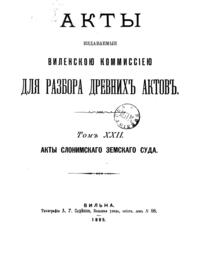 Обилие актов и документов Виленского центрального архива (19244 актовых книг) и желание исследовать прошлое Литвы, которая и в старину принадлежала России, вызвали после 1863 года учреждение особой комиссии для разбора в городе Вильне древних актов.