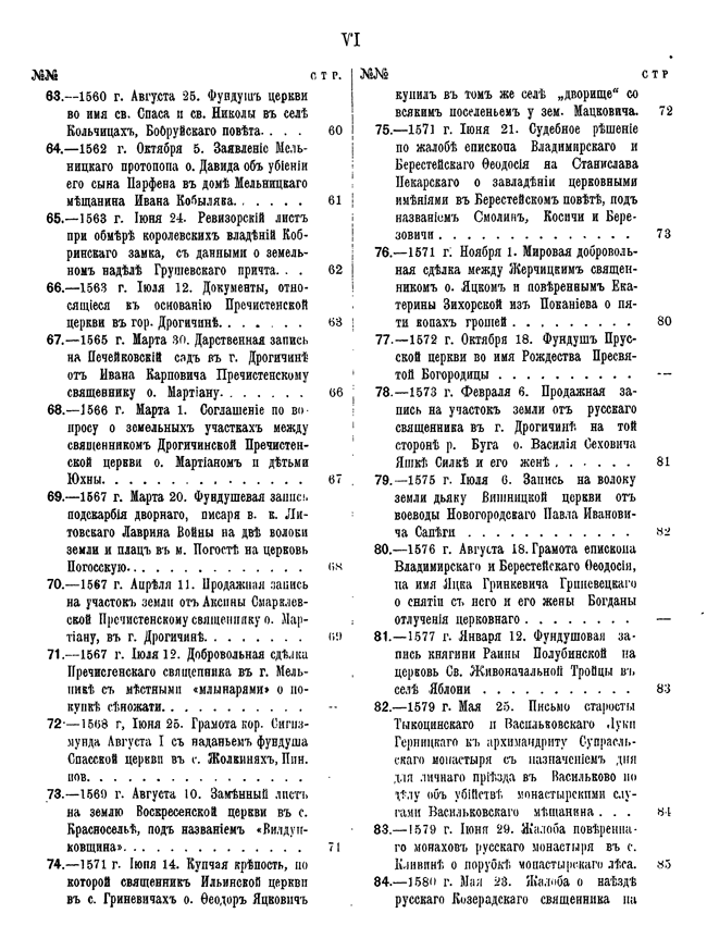 Том VI. Акты Брестского городского суда, акты Брестского Подкоморского суда, акты Брестской Магдербургии, акты Кобринской Магдербурги, акты Каменецкой Магдербурги.