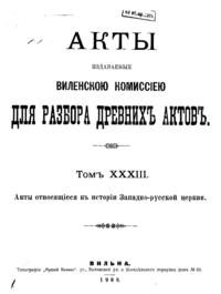 Обилие актов и документов Виленского центрального архива (19244 актовых книг) и желание исследовать прошлое Литвы, которая и в старину принадлежала России, вызвали после 1863 года учреждение особой комиссии для разбора в городе Вильне древних актов.