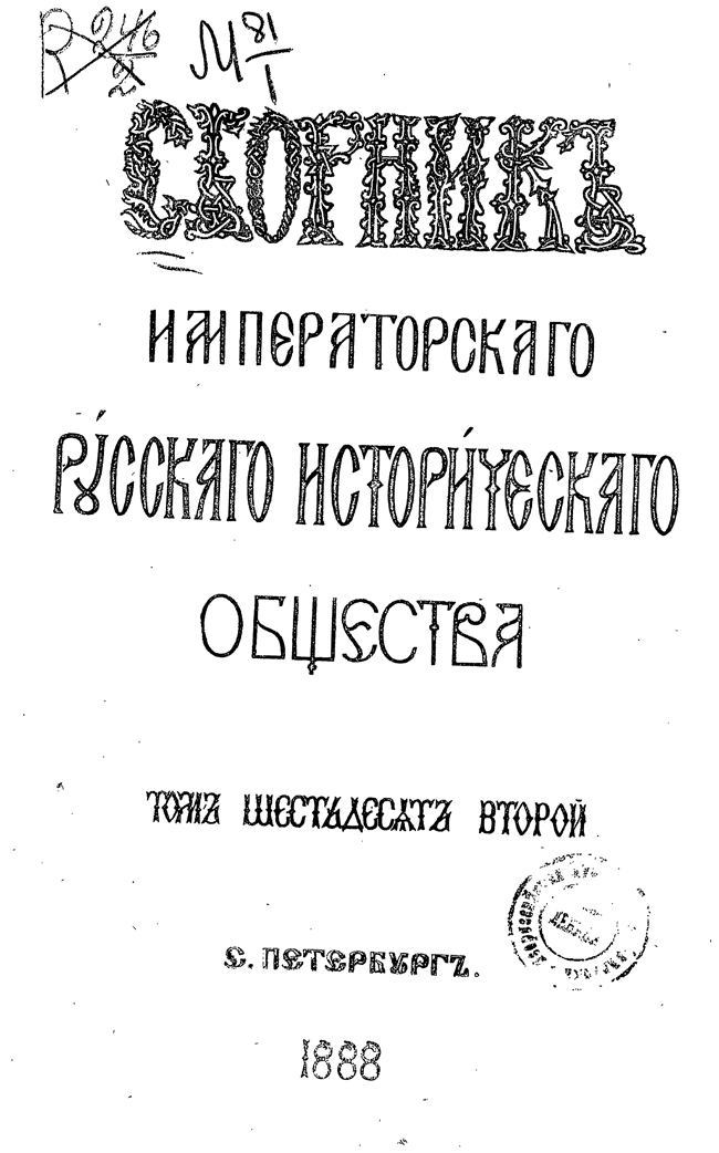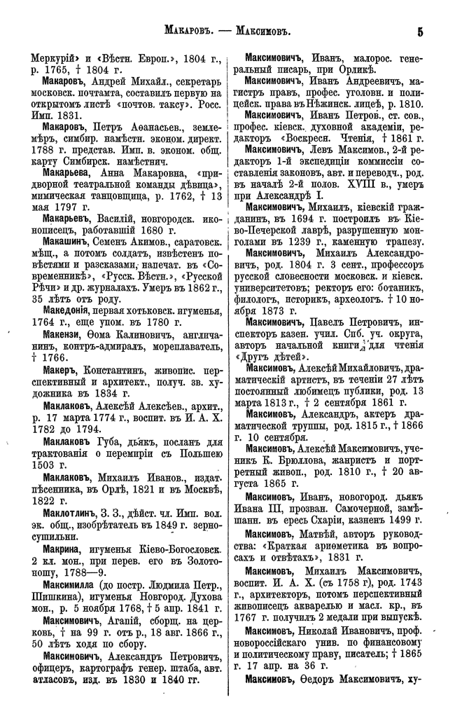 Первая попытка Русского Исторического Общества составить биографический словарь важных отечественных деятелей. Носила подготовительный характер и представляет собой просто список имен, с указанием срока жизни и основного занятия.