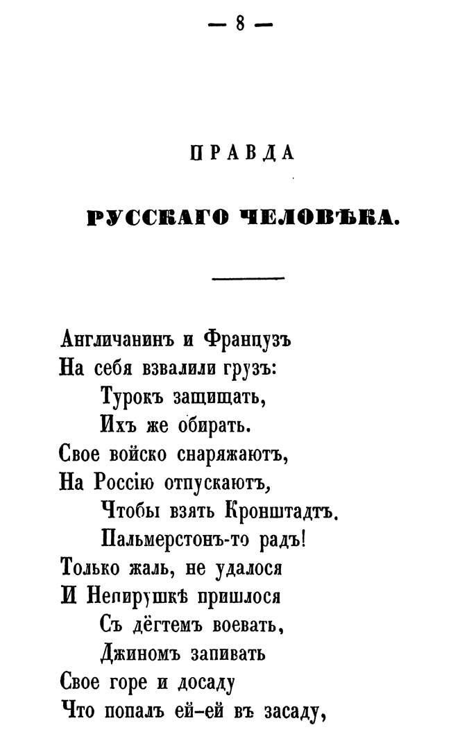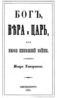 Издание содержит сочинения Петра Татаринова, посвященные Крымской войне (1853-1856). В них содержатся рассуждения о славе и величии России, описания битв, прославление подвигов русской армии, анекдоты, письма с мест военных действий.