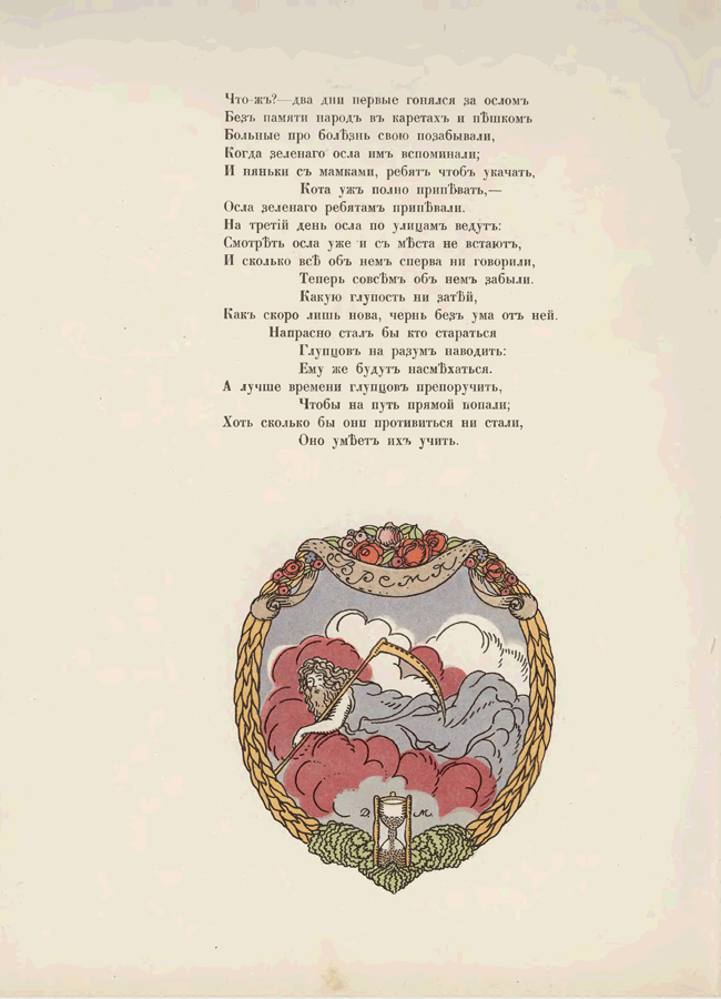 Это издание басен входило в так называемую «Подарочную серию» для детей, которую решил выпустить в свет замечательный издатель И. Н. Кнебель. Оформление серии было заказано художнику Дмитрию Митрохину. Предполагалось, что «Подарочная серия» будет включать в себя двенадцать книг для детей. Кнебель предложил к иллюстрированию сказки В. Гауфа «Жизнь Альмансора», «Корабль-призрак», «Маленький Мук»; сказки Р. Густафсона «Земной глобус папы», «Баржа»; сказку Г. Х. Андерсена «Мена»; «Басни» И. И. Хемницера; баллады В. А. Жуковского «Кубок» и «Роланд оруженосец»; «Спор» М. Ю. Лермонтова; сказку «Золотая рыбка» и, видимо, современное сочинение В. Стражева «За синей далью». Рисунки к двум последним произведениям и сказке Андерсена не сохранились.
