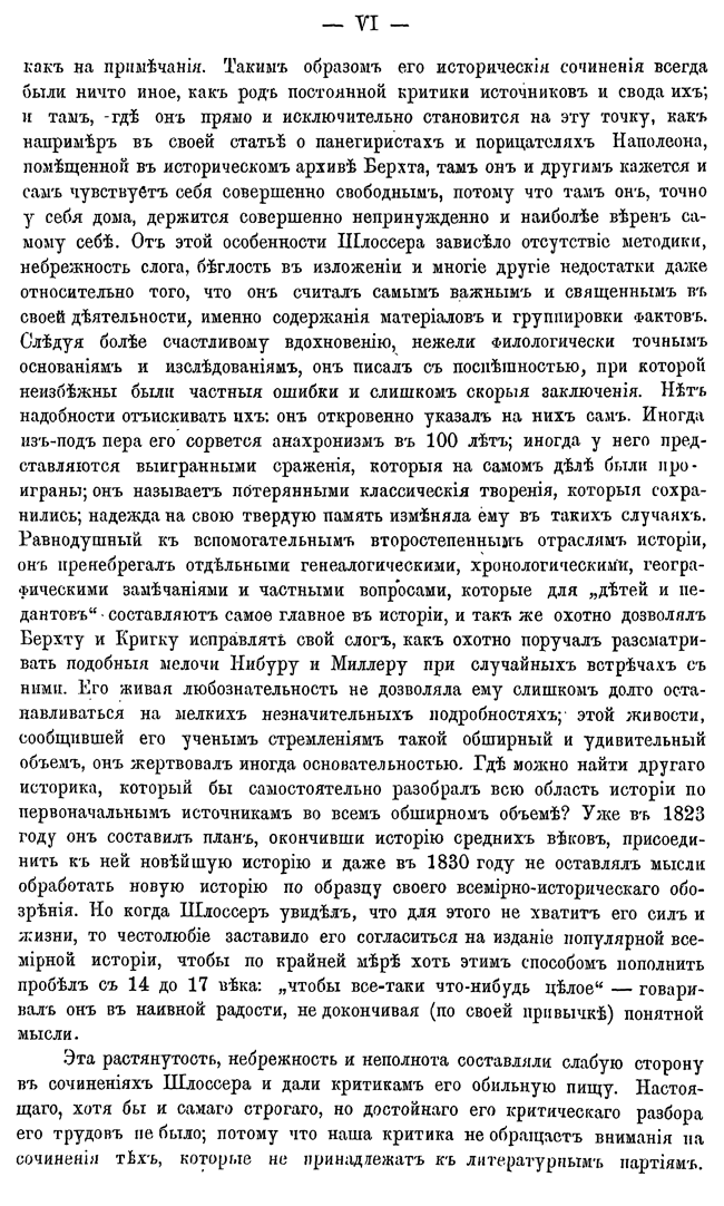 Следует обратить внимание на то, что русский перевод Шлоссера содержит цензурные пропуски , обозначенные отточиями,( особенно в главах, посвященных России), а также искажения, сознательно внесенные самим Чернышевским с целью смягчить или, наоборот, усилить некоторые оценки автора.
