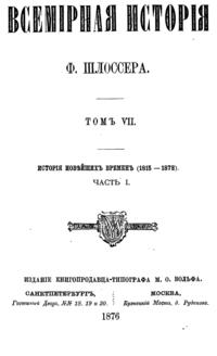 «Всемирная история» — знаменитый фундаментальный труд немецкого ученого Фридриха Кристофа Шлоссера представляет собой синтез его специальных исследований и университетских курсов. Описываемый период доведен до 1815 года.