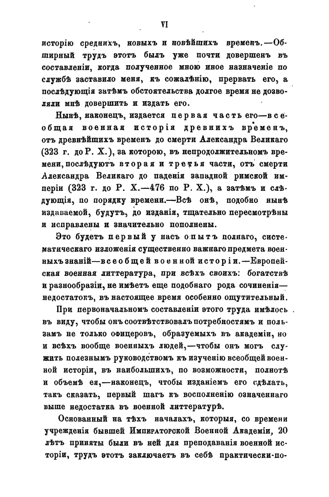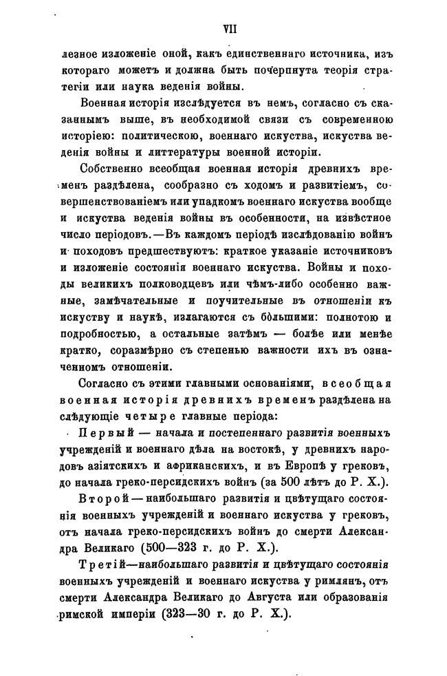 «Всеобщая военная история» представляет собой полный и подробный обзор войн и походов великих полководцев, военно-исторических событий в необходимой связи с современной автору историей: политической, военного искусства, искусства и науки ведения войны и военной литературы. «Всеобщая военная история древних времен» состоит из двух частей. Первая посвящена историческим событиям от древнейших времен до смерти Александра Великого (232 г. до н. э.). Вторая часть рассказывает об истории следующего периода — от смерти Александра Великого до падения Западной Римской Империи (323 г. до н. э. — 476 г. н. э.).