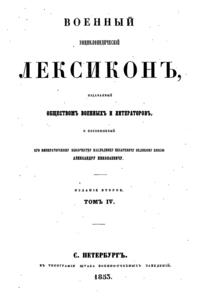 Военный энциклопедический лексикон впервые издавался с 1837 по 1850 год и насчитывает 14 основных томов и один дополнительный (вышел в 1852 г.). Этот огромный труд обязан своим появлением почти исключительно энергии и настойчивости его редактора барона Л. И. Зедделера, на котором лежала вся основная масса работы. По сути своей «Лексикон» являлся первой русской военной энциклопедией (до него выходил только двухтомный «Военный словарь» С. А. Тучкова, в 1818 г.). Несмотря на довольно холодный приём военными кругами первых выпусков «Лексикона», выходившего небольшими книжками (известно, что первая часть состояла из четырёх отдельных книжек) через значительные промежутки времени и стоившего в продаже весьма немалых денег, Зедделер настойчиво занимался его изданием, вложив, помимо личного труда, и значительную часть своего состояния, и в течение 13 лет привёл его к окончанию. Программа «Лексикона» была намечена чрезвычайно широко, имея в виду крайне низкий образовательный уровень армейского офицерства времён императора Николая I и трудность пополнения общего образования при глухих стоянках и постоянном передвижении полков с места на место. В силу этого в «Лексикон» включён ряд сведений, весьма отдалённо связанных с военным делом. Барону Зедделеру удалось привлечь к составлению «Лексикона» наиболее выдающихся военных и учёных Николаевского времени, среди которых особо выделяются К. Ф. Багговут, М. И. Богданович, К. М. Базили, А. В. Висковатов, Н. С. Голицын, А. Н. Греч, Д. А. Милютин, А. И. Михайловский-Данилевский, П. И. Рикорд и другие. Из отделов «Лексикона» наиболее полным и наиболее тщательно составленным является военно-исторический отдел; слабее всего выглядит отдел военной техники, что вполне соответствует тогдашнему её состоянию. «Лексикон» построен по алфавиту статей; к некоторым томам сделано особое «Прибавление», включающее в себя некоторые статьи, пропущенные по разным причинам в предыдущих томах. В связи с долгим изданием «Лексикона» и достаточно быстрым устареванием имеющихся в нём сведений, в 1852 г. был выпущен дополнительный том под названием «Прибавление к Военному энциклопедическому лексикону».