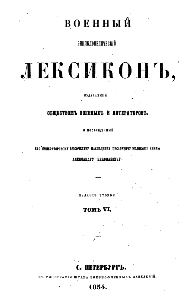 Военный энциклопедический лексикон. Том VI.