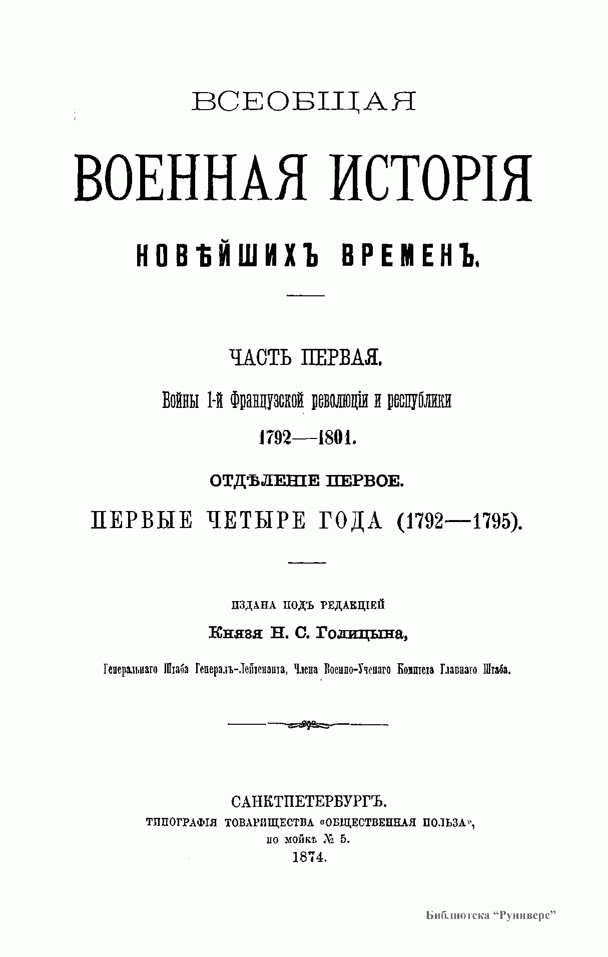 «Всеобщая военная история новейших времен» подробно описывает историю войн времен французской революции и республики, а также включает в себя уникальное собрание биографий военачальников.