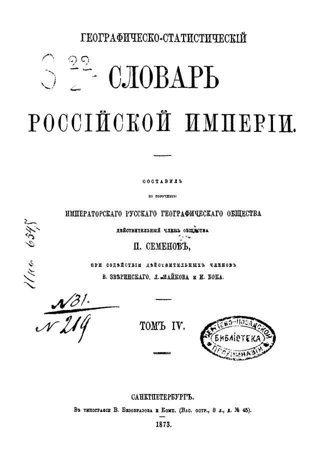 Географическо-статистический словарь Российской Империи. Том IV