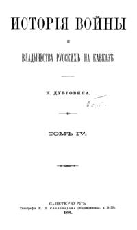 Сочинение Дубровина рисует картину завоевания русскими Кавказа, борьбу их с местным населением и времена наместничества. Подробно описаны не только военные события, но также быт и обычаи горных племен; жизнь их до принесения русских законов и после. Особенно тщательно выведены деяния наместников, даны многочисленные портреты персонажей эпохи покорения. События доведены до отставки Ермолова и назначения Паскевича.
