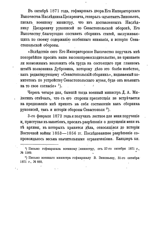 По желанию цесаревича Александра Александровича ( будущего императора Александра III), военному министерству было поручено выделить автора для составления книги о Крымской войне, и в особенности, героической Севастопольской обороне. Таким автором был выбран полковник Дубровин, уже известный специалист по этому периоду, бывший редактором «Севастопольского сборника».