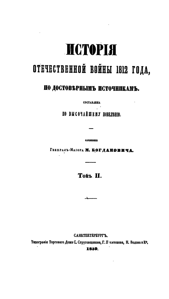 Богданович продолжает дело официальных историографов Бутурлина и Михайловского-Данилевского, но в его ведении находится гораздо большее количество документов и сведений. Богданович пытается подойти к изложению фактов с точки зрения критического анализа, чтобы выявить что-то полезное для военного искусства, а не просто пересказать события.