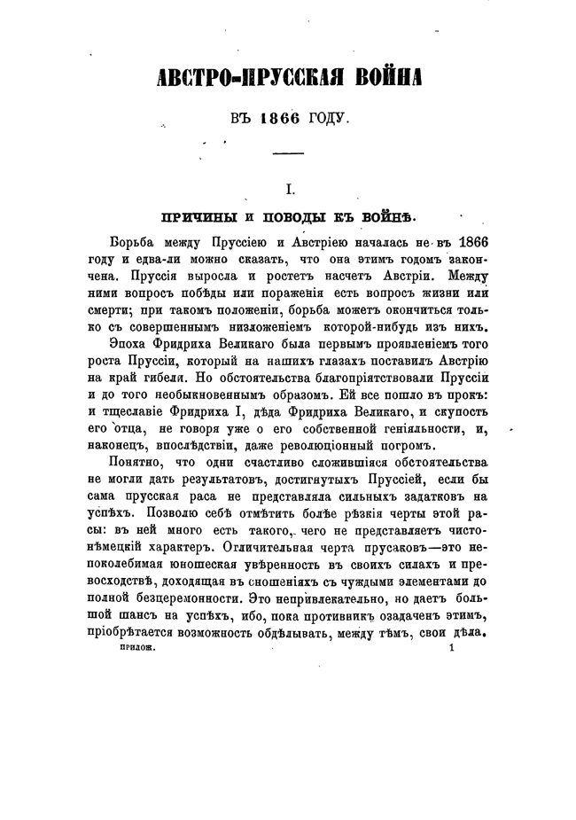 Анализ войны между Пруссией и Австрией за гегемонию в германском мире от знаменитого теоретика Драгомирова, прикомандированного во время этих событий к прусскому штабу.