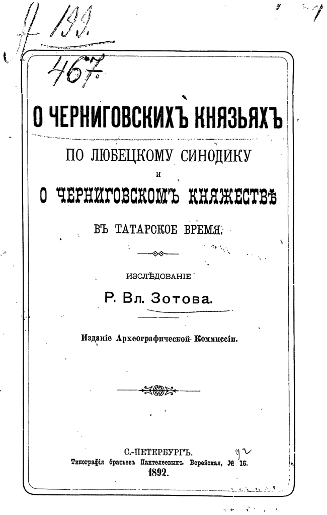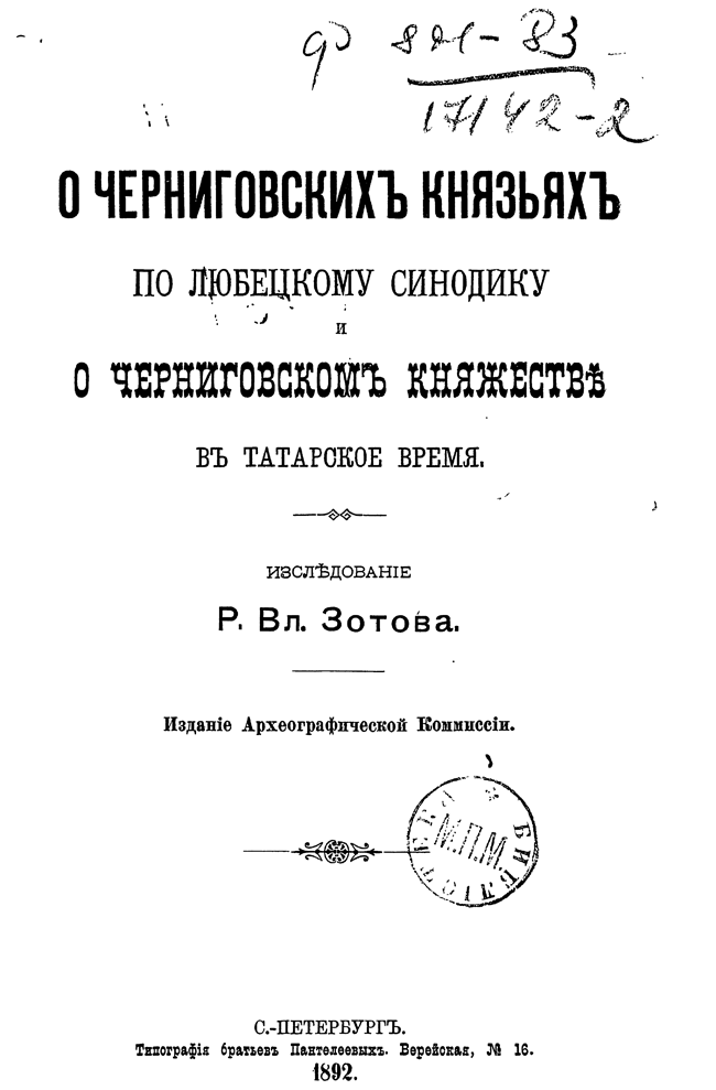 О черниговских князьях по Любецкому синодику и о Черниговском княжестве в татарское время