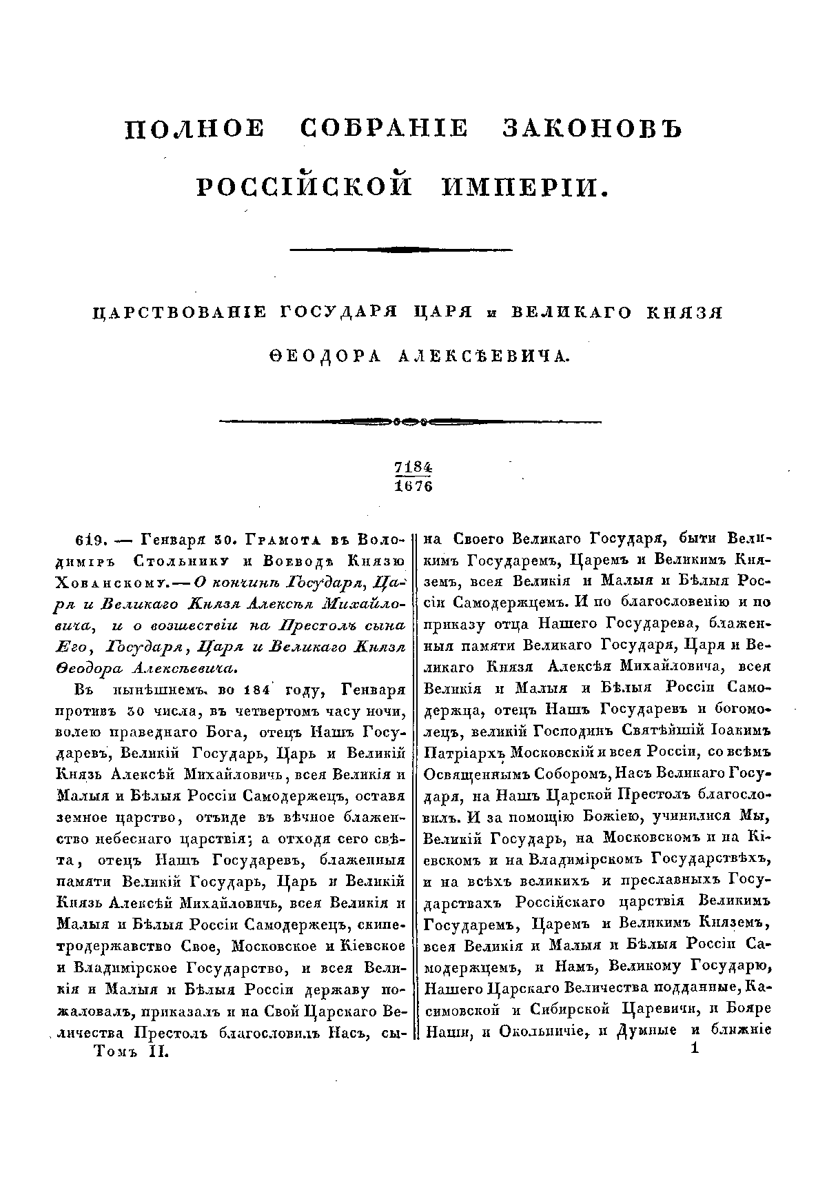 Полное собрание законов Российской Империи. Собрание Первое. Том II
