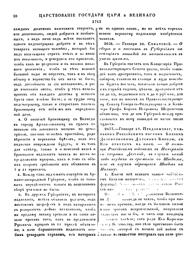 Первое издание 1830 г., составленное под руководством М. М. Сперанского, включает более 30 тысяч законодательных актов с 1649 по 1825 г (45 томов) — время правления Алексея Михайловича — Александра I (33 тома).