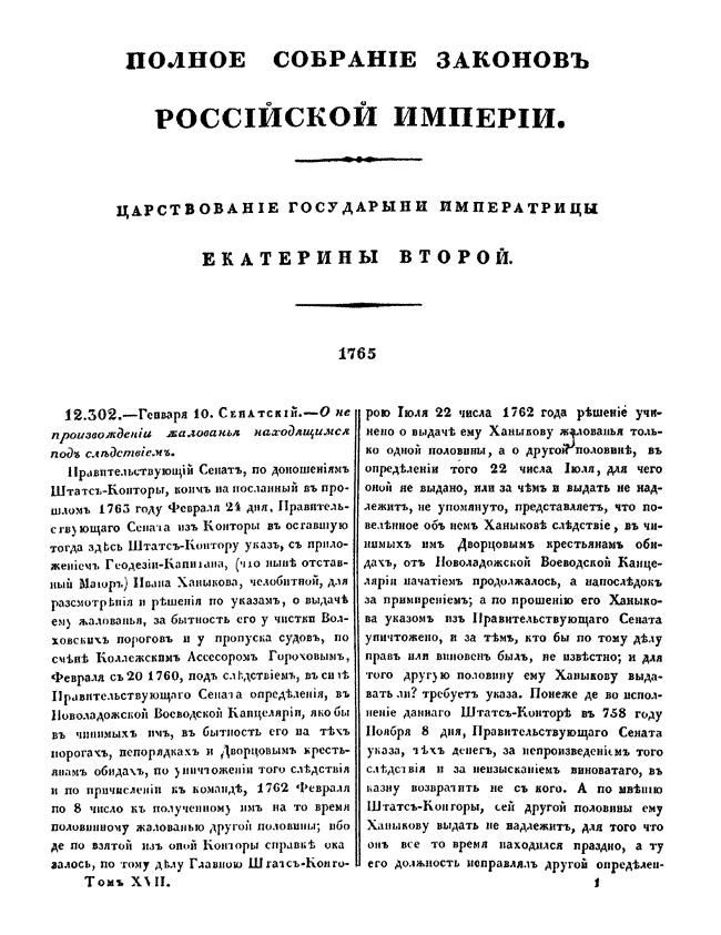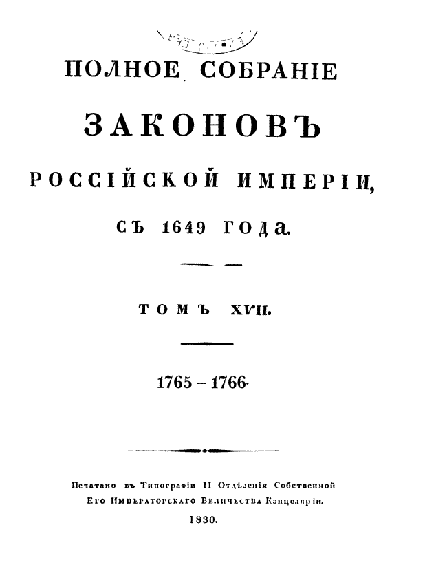 Полное собрание законов Российской Империи. Собрание Первое. Том XVII