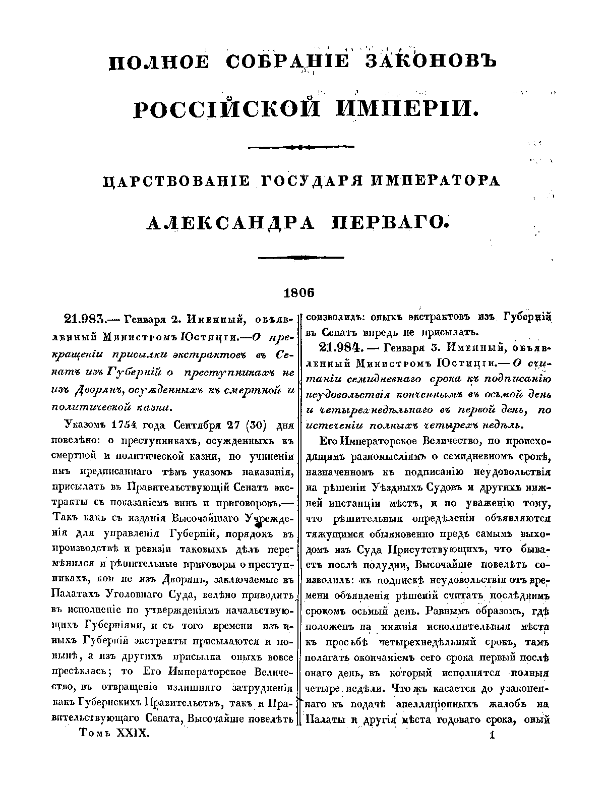 Полное собрание законов Российской Империи. Собрание Первое. Том XXIX