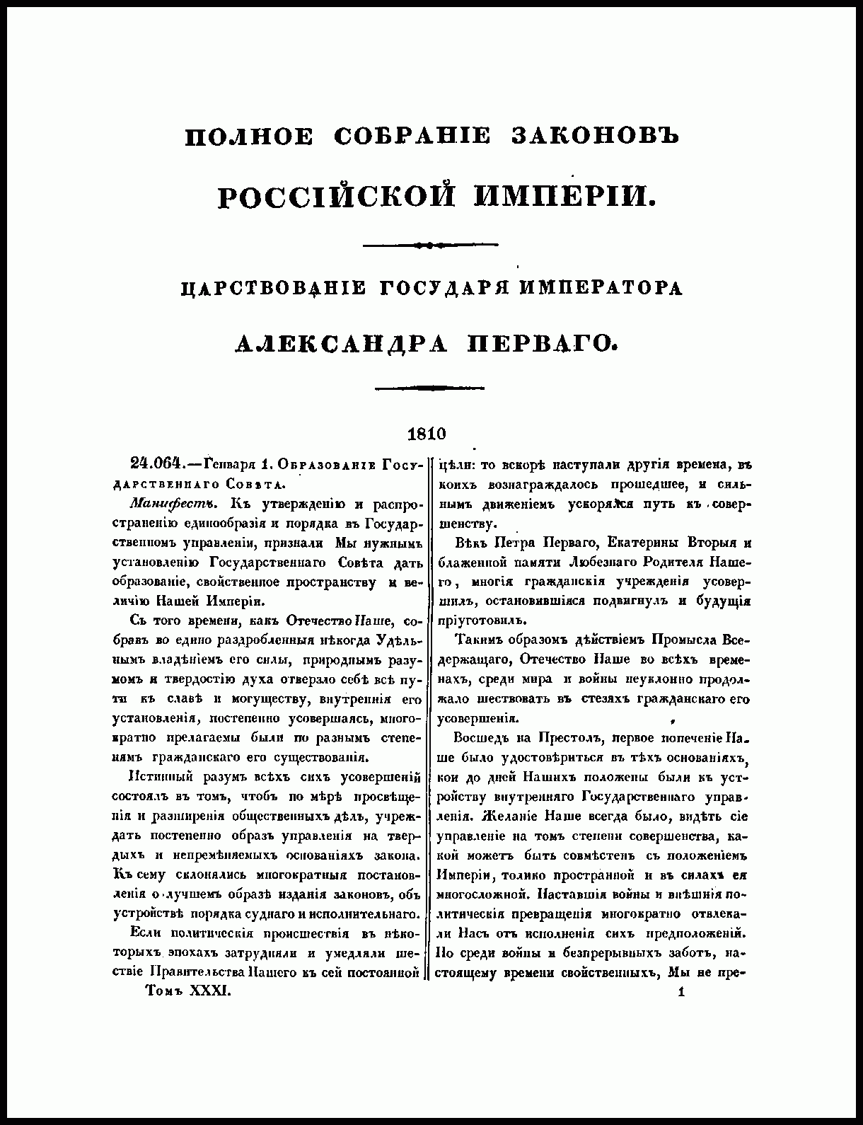 Полное собрание законов Российской Империи. Собрание Первое. Том XXXI
