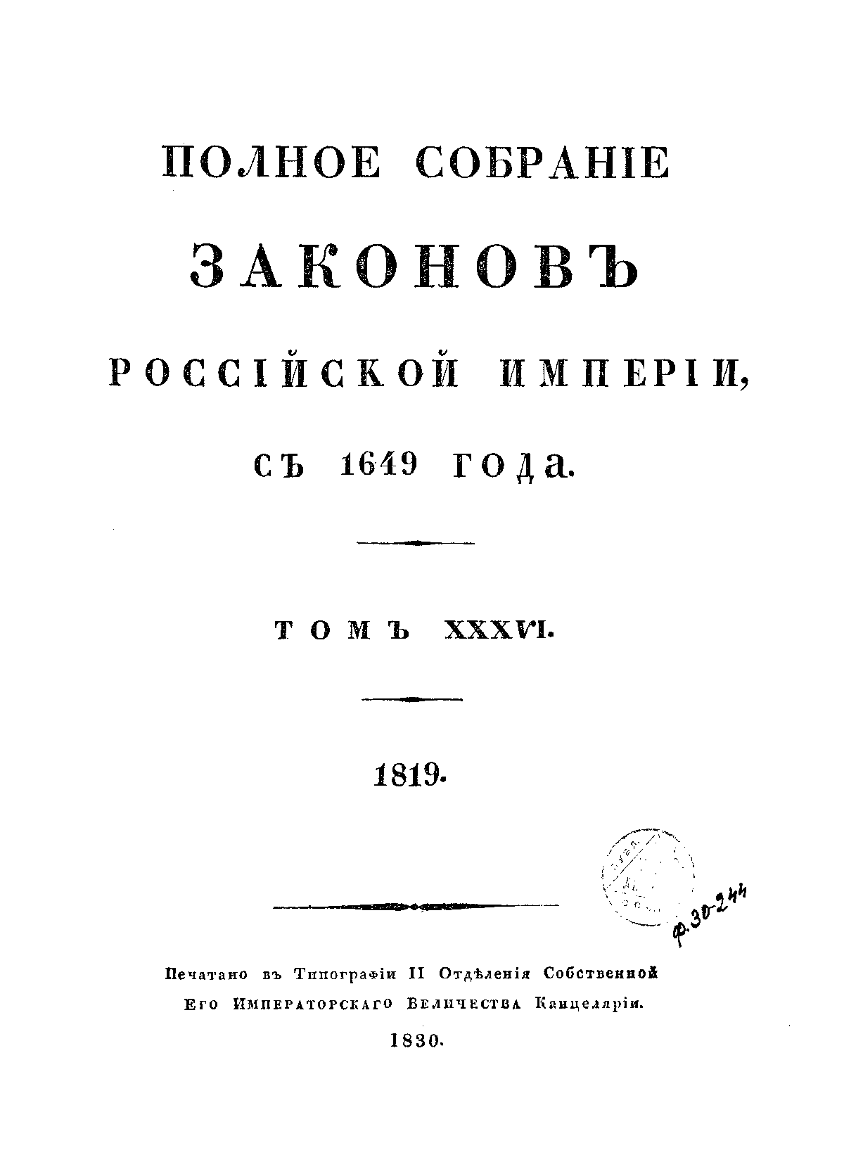 Полное собрание законов Российской Империи. Собрание Первое. Том XXXVI