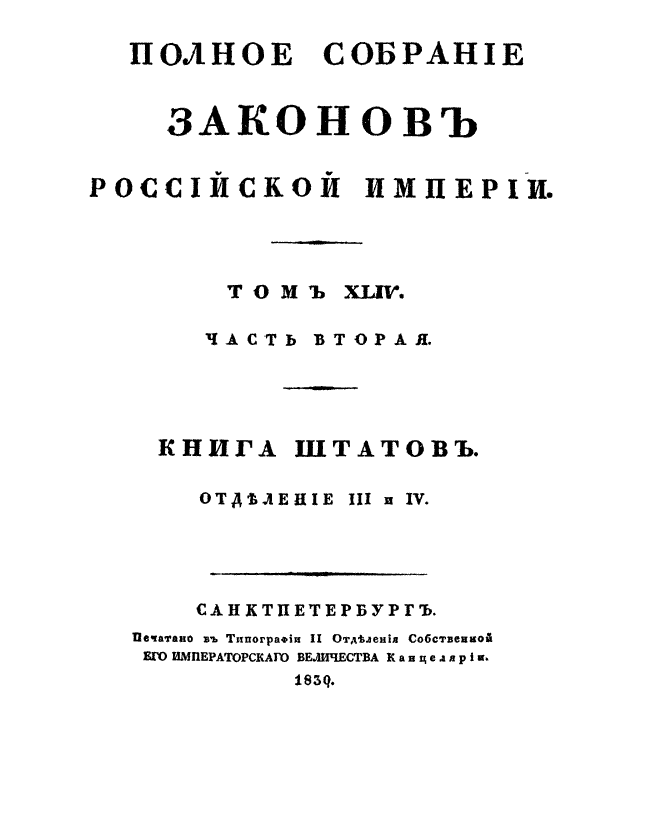 Полное собрание законов Российской Империи. Собрание Первое. Том XLIV. Часть 2