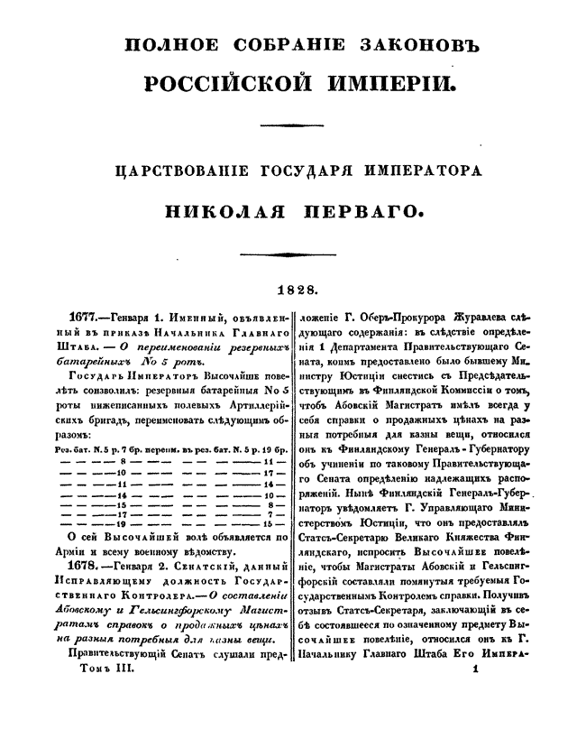 Полное собрание законов Российской Империи. Собрание Второе. Том III