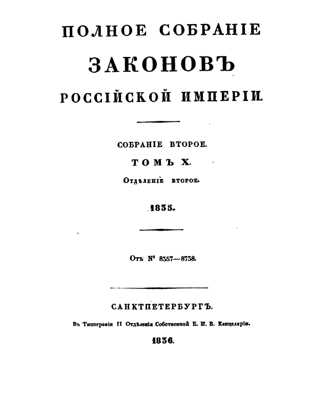Полное собрание законов Российской Империи. Собрание Второе. Том X. Отделение 2