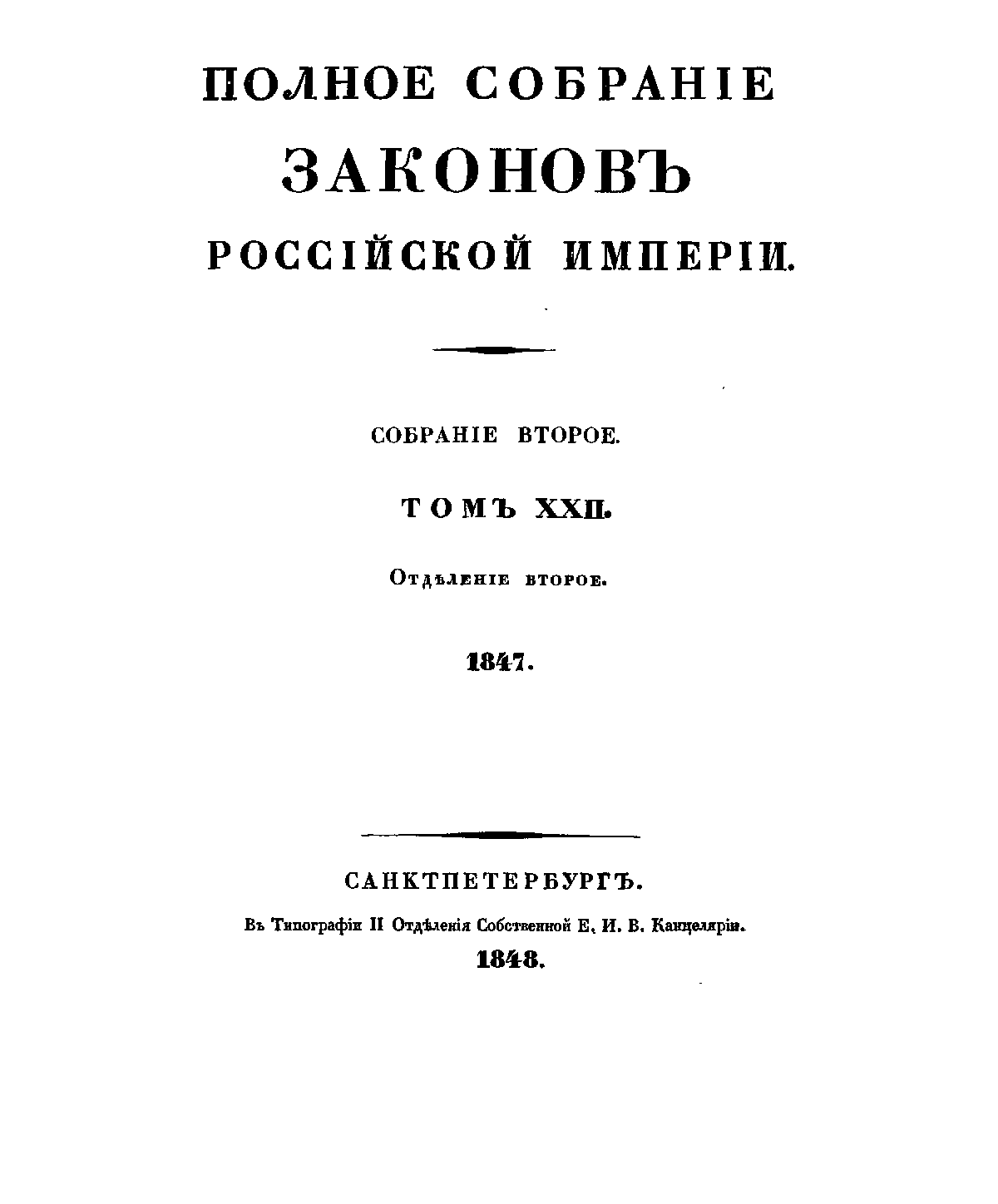 Полное собрание законов Российской Империи. Собрание Второе. Том XXII. Отделение 2