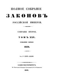 Полное собрание законов Российской Империи. Собрание Второе. Том XXV. Отделение 1