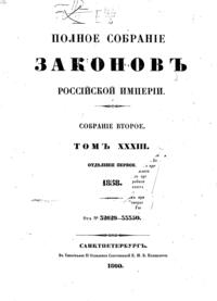Полное собрание законов Российской Империи. Собрание Второе. Том XXXIII. Отделение 1