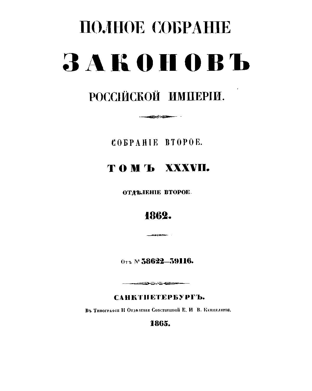 Полное собрание законов Российской Империи. Собрание Второе. Том XXXVII. Отделение 2